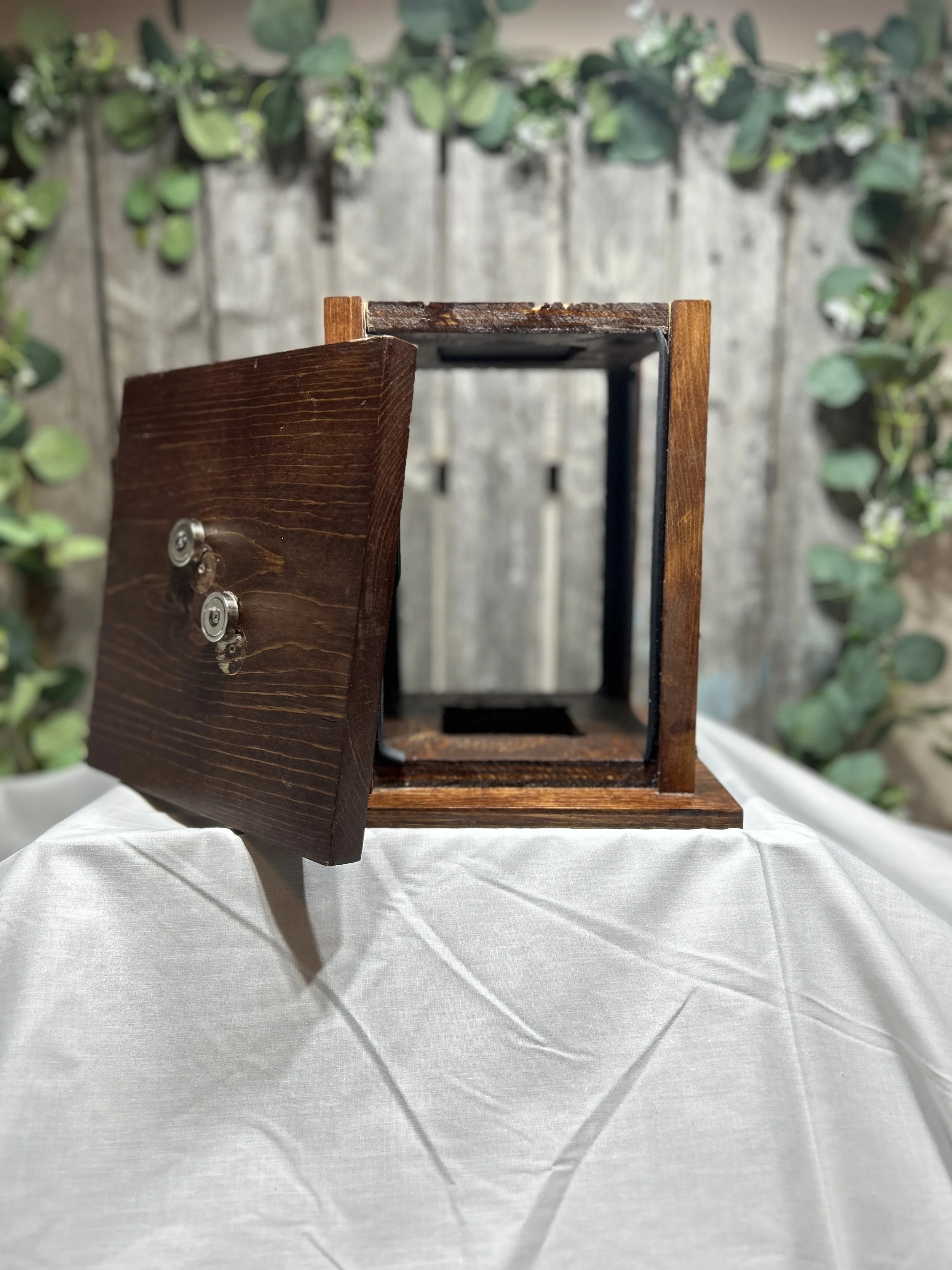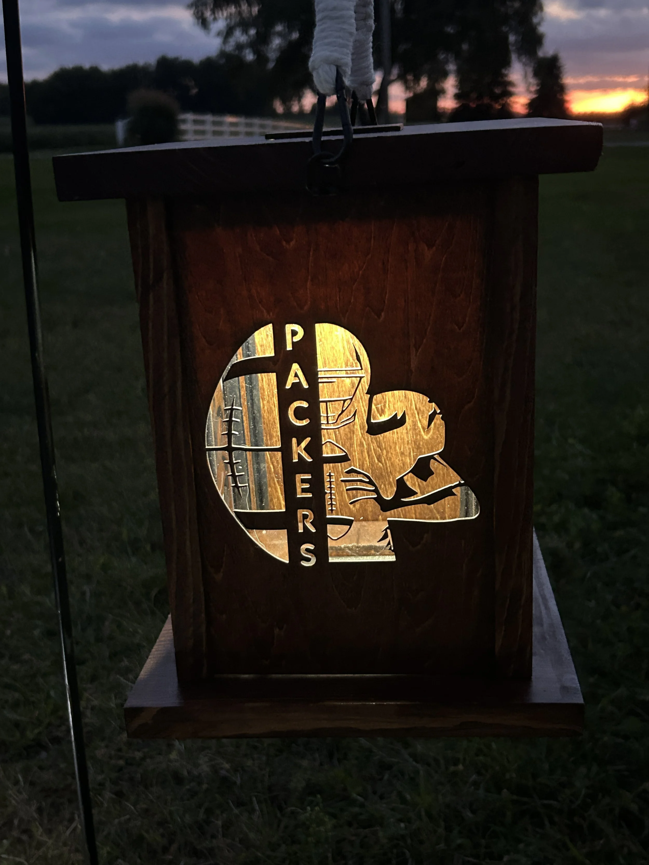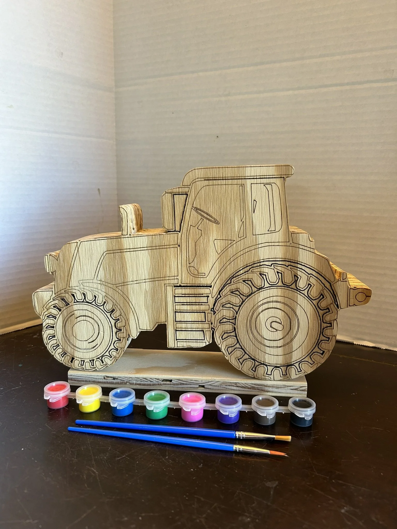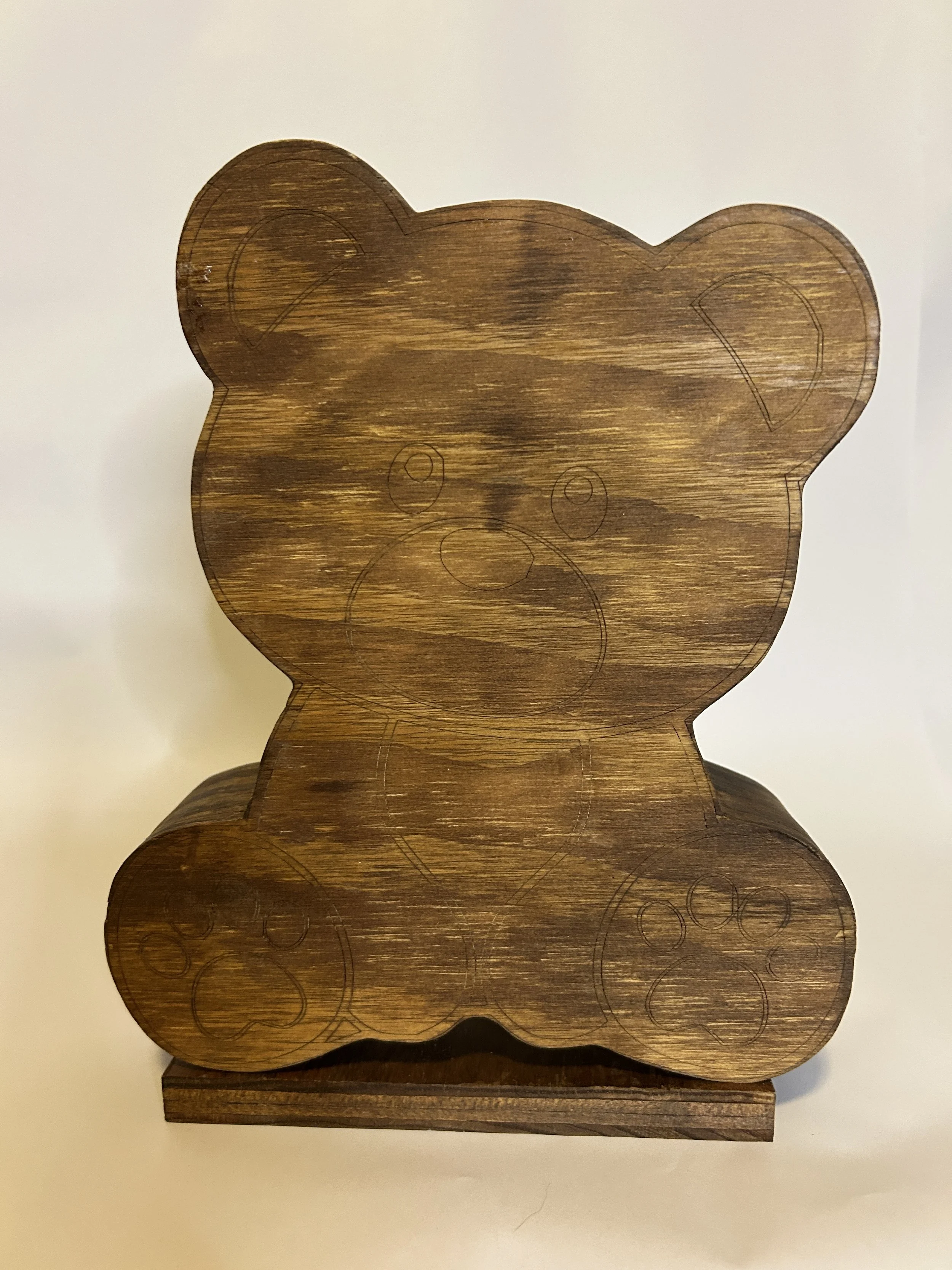• These banks are made using a laser on ¼ inch plywood. With three layers of ¾ inch plywood glued together and hollowed out for change storage.