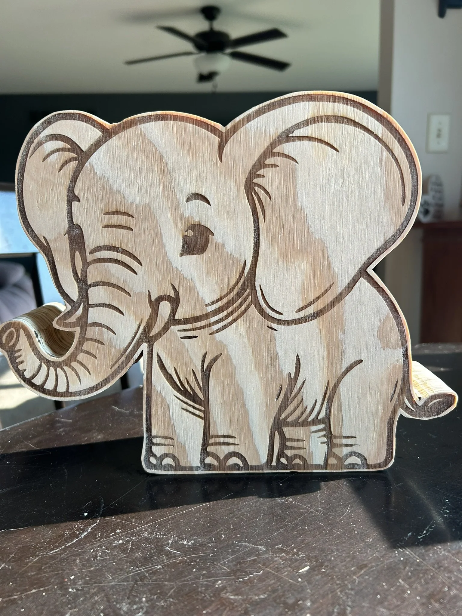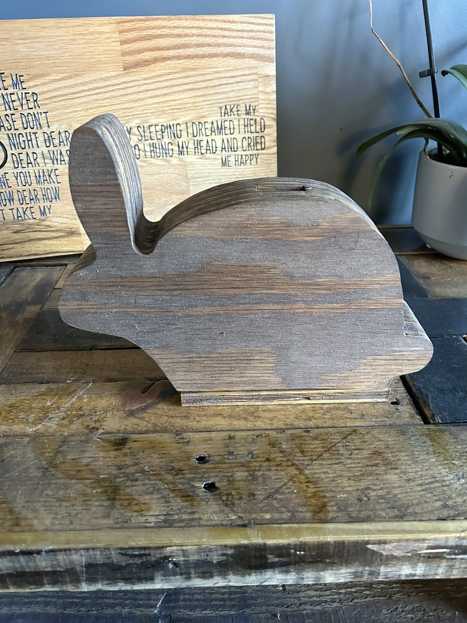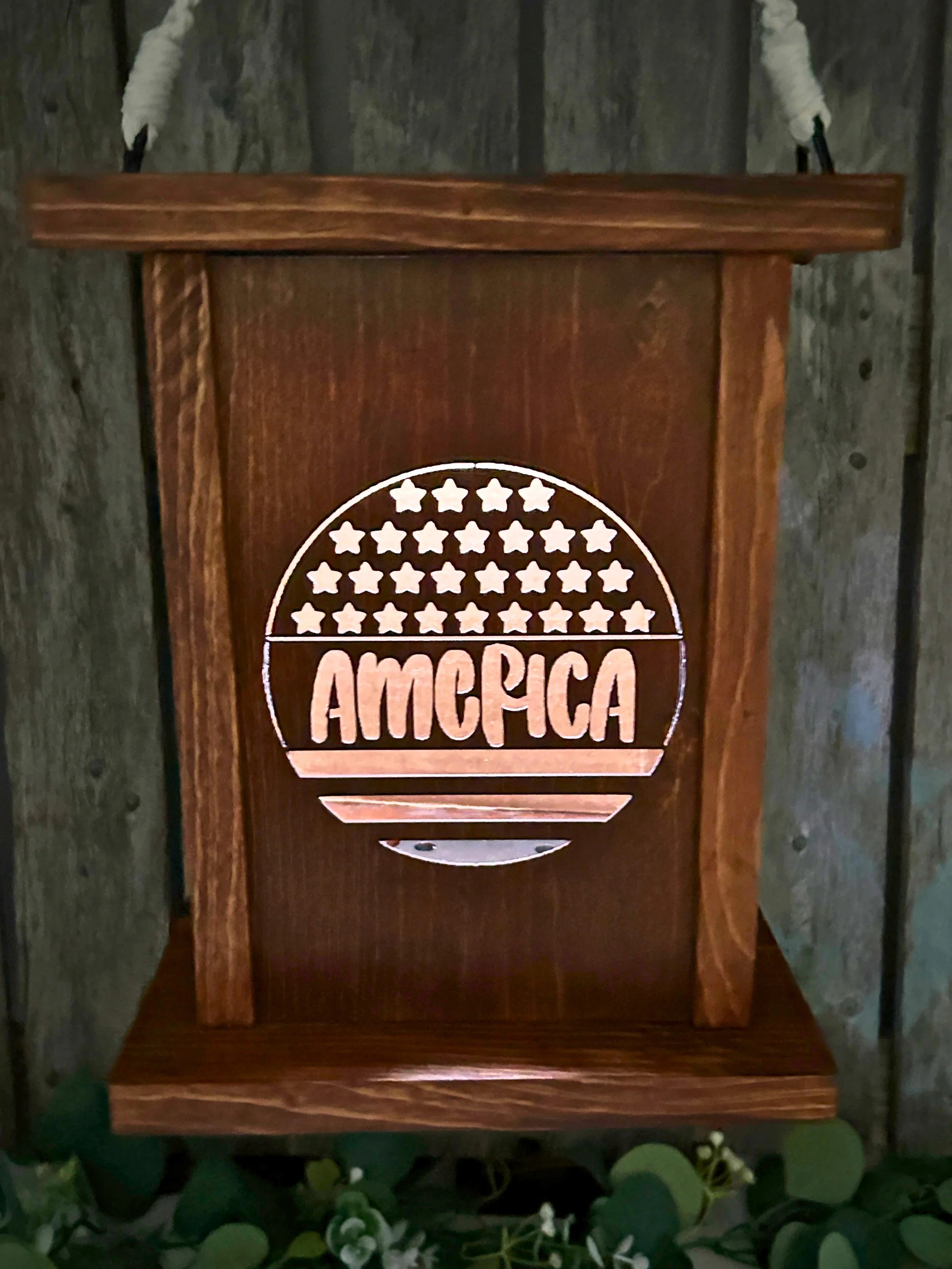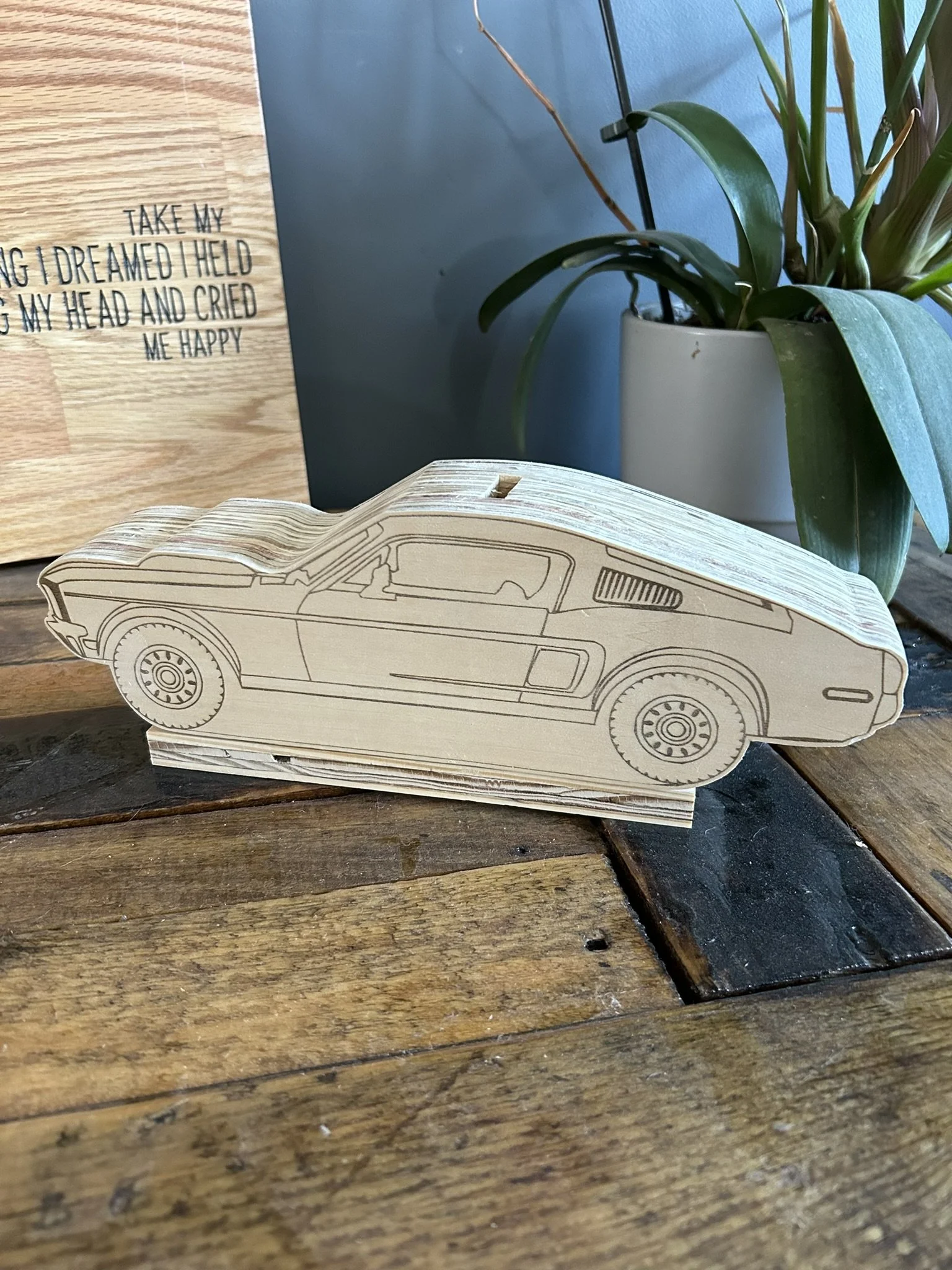 • These banks are made using a laser on ¼ inch plywood. With three layers of ¾ inch plywood glued together and hollowed out for change storage.